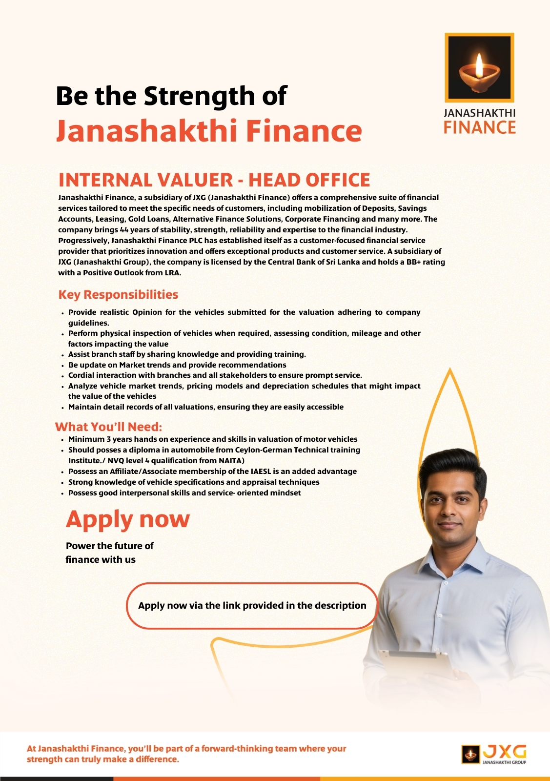 Send your CV to: careers@jfplc.lk